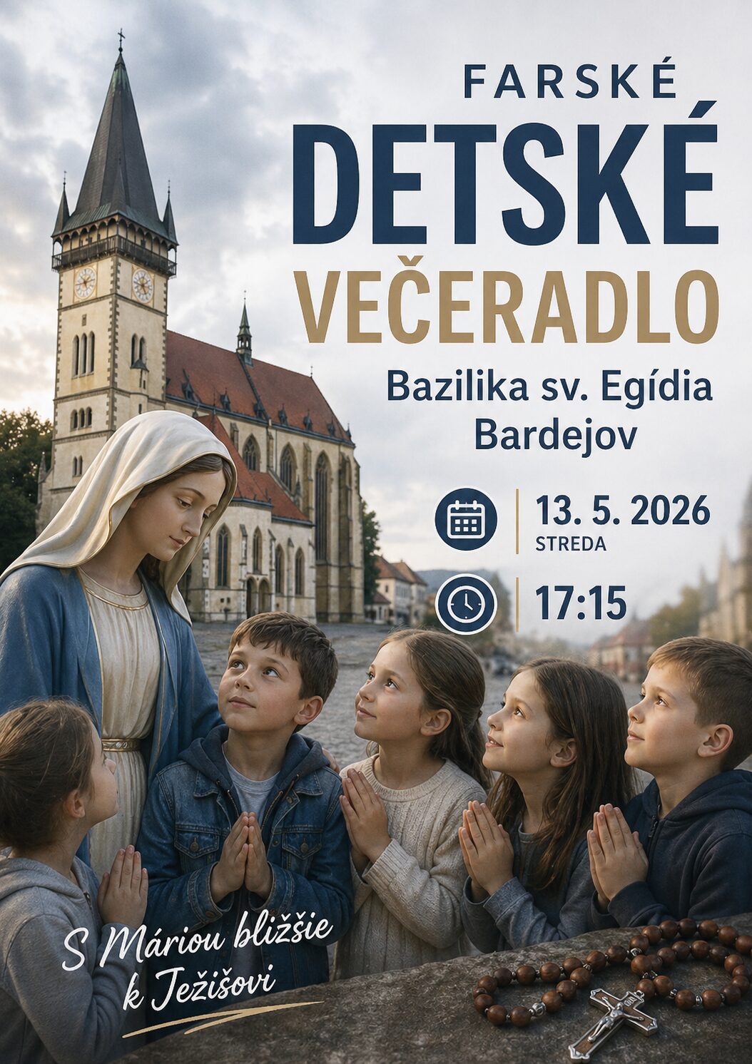 Pozývame všetky deti spolu s rodičmi na Farské detské večeradlo, ktoré sa uskutoční v stredu 13. mája 2026 o 17:15 v Bazilike sv. Egídia v Bardejove.